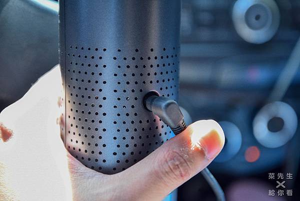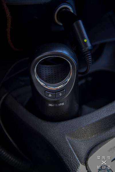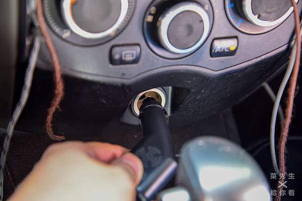 接下來我們把場景移到車上。把車用電源轉換器插到車上的 15v供電口(也就是俗稱的點煙器加熱孔)中。